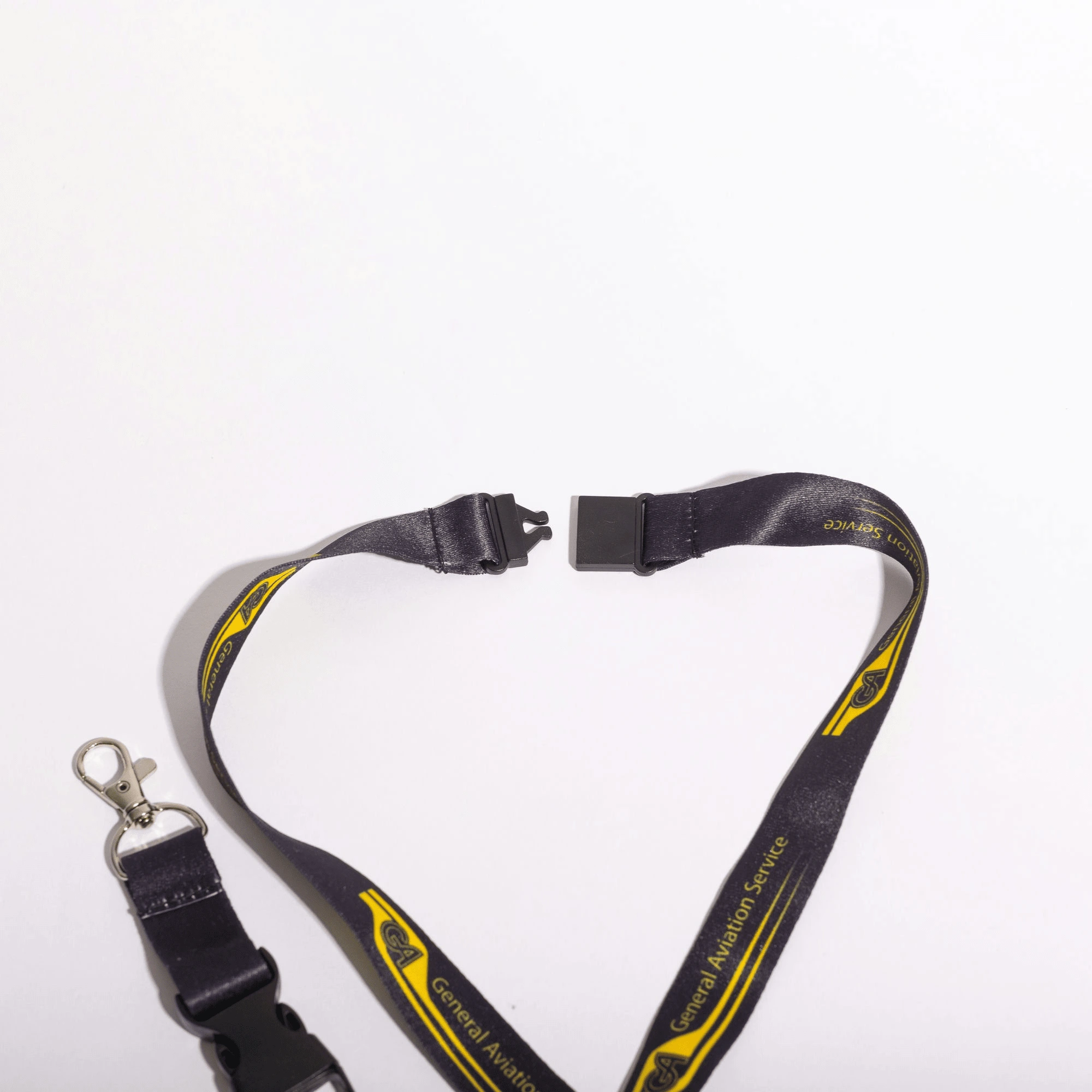 Lanyard personalizado con doble sistema de cierre: trasero de seguridad anti-tirones y delantero desmontable. Ideal para eventos, ferias o entornos laborales donde se requiere comodidad y protección. Personalizable a todo color mediante sublimación de alta calidad.